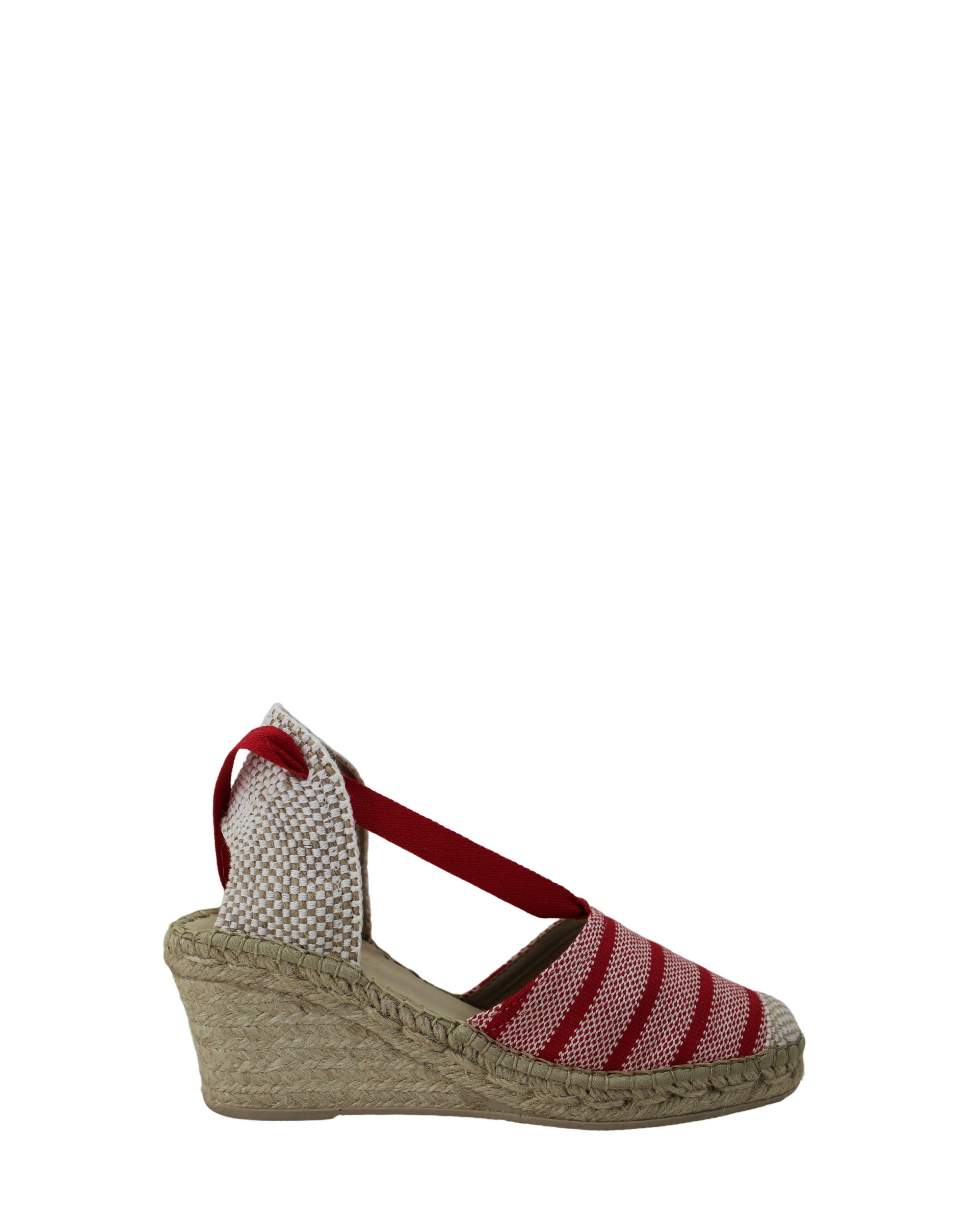 Descrição : Fabricada em Portugal, alpercata ANA GABI de cunha em corda. Apresenta detalhe de palmilha em pele almofadada, e traseira tipo valenciana com fitas para atar na perna .
