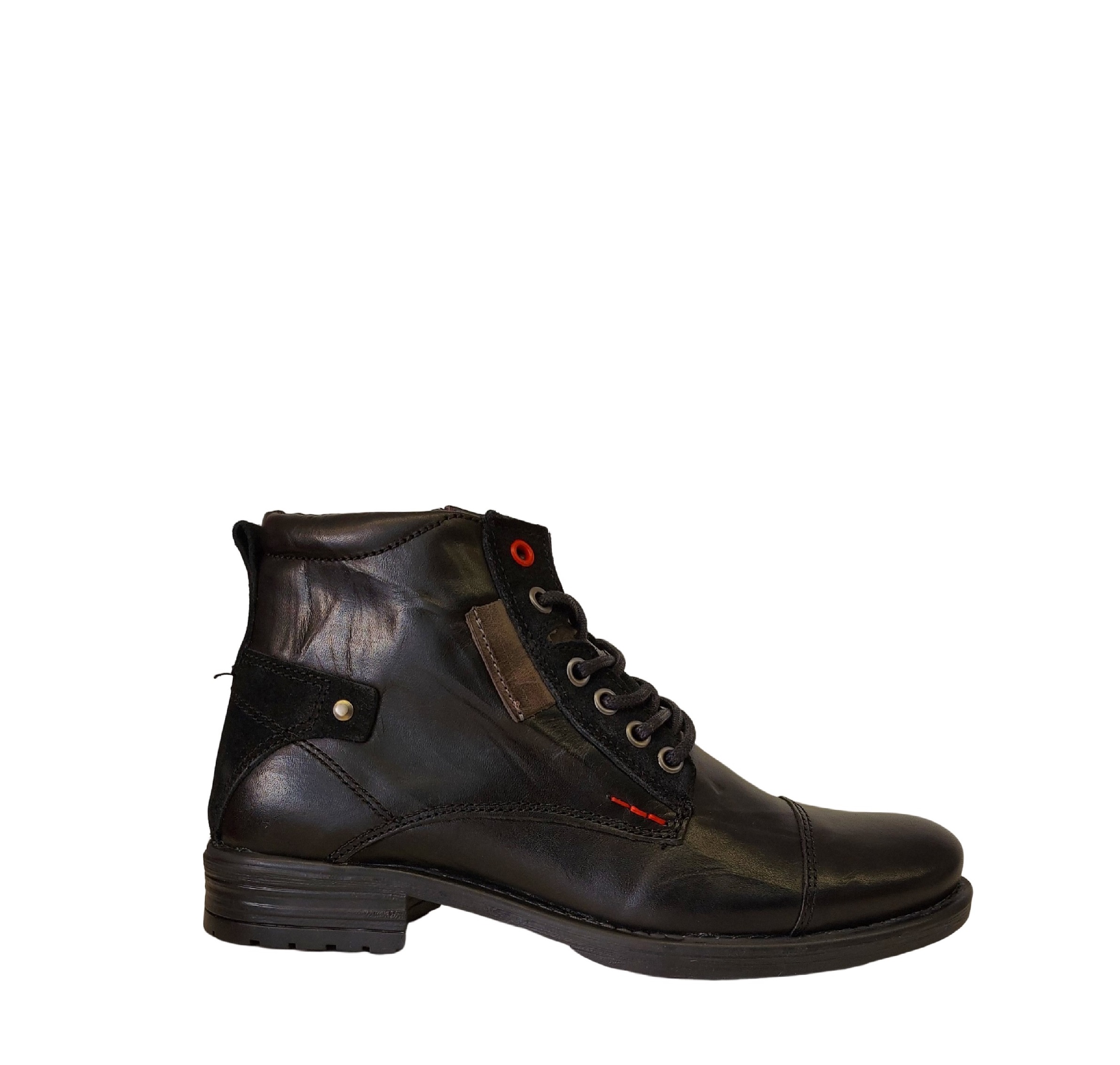 Descrição : FABRICADA EM PORTUGAL .Bota em pele com atacadores . Apresenta puxador traseiro e fecho eclair para facilitar o calçar.
