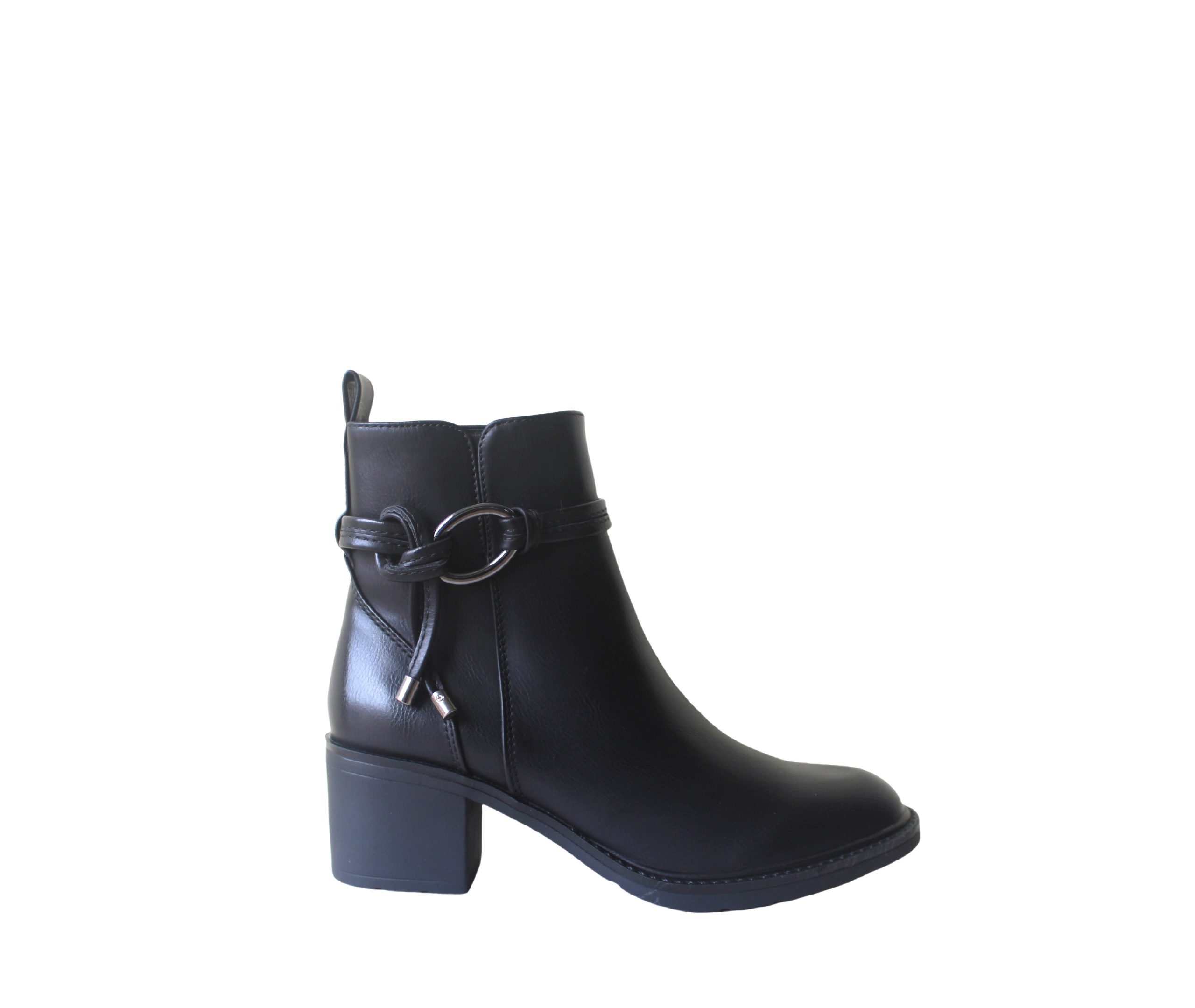 Descrição : Botim em pele sintetica, . Apresenta puxador traseiro e fecho interior, para facilitar o calçar
