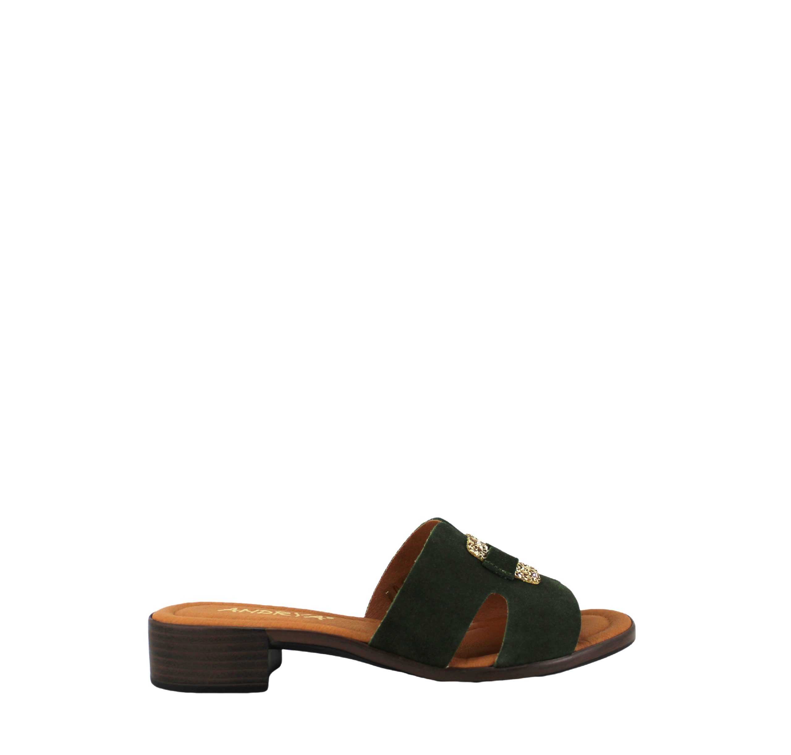 Descrição : Fabricado em Portugal,este chinelo todo em pele e pele acamurçada, com palmilha de gel suave e sola de salto. Design de Pala com aplicação sobre a gáspea.