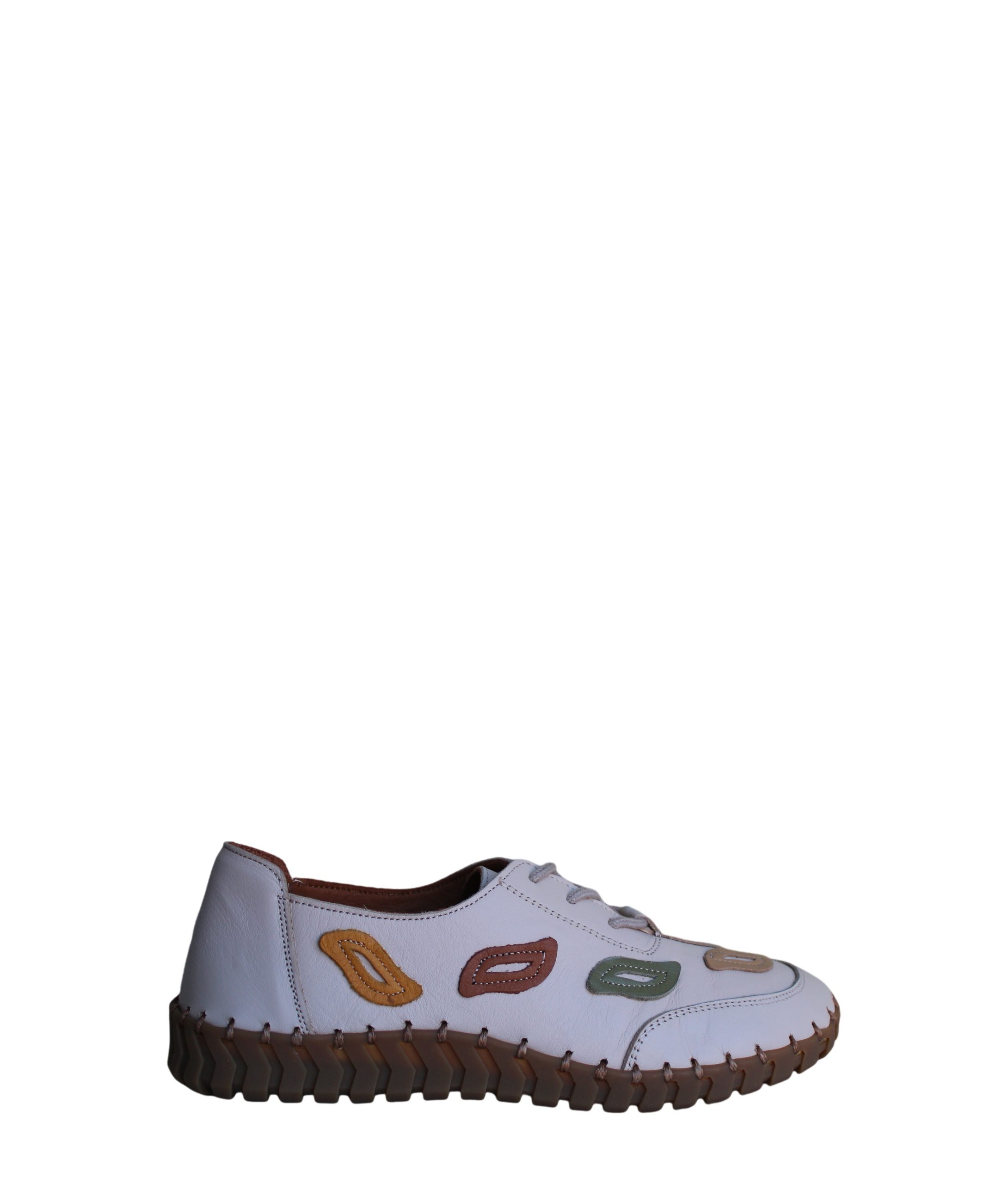 Exterior : Pele lisa com aplicações e atacadores elástico e sola costurada