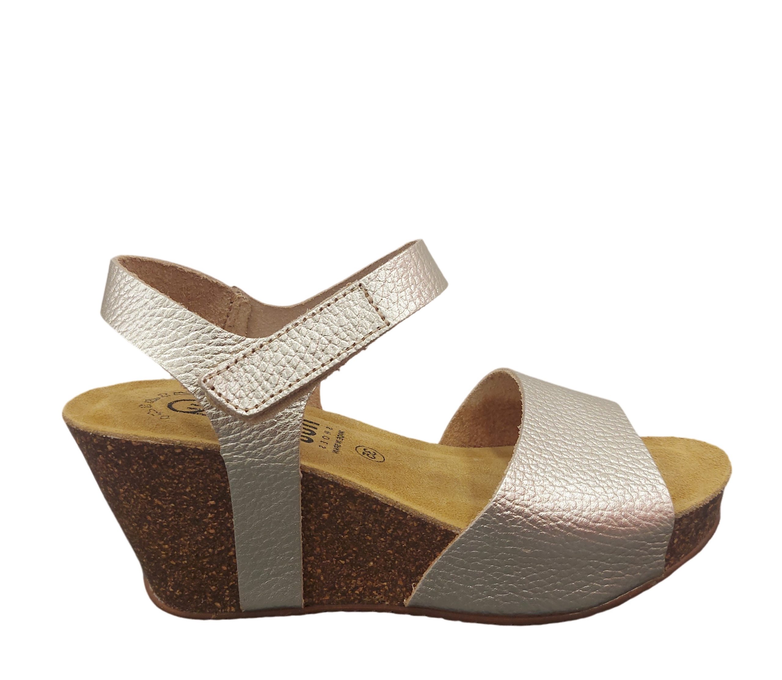 Descrição : Sandálias de senhora Hee com sola de cunha. Este modelo é fabricado em peles de alta qualidade! Com palmilha anatómica de pele altamente confortável com a forma do pé. A sola é em cortiça com a parte inferior em borracha, esta sandalia com tira de velcro no peito do pé para ajuste,proporciona estabilidade ao caminhar.