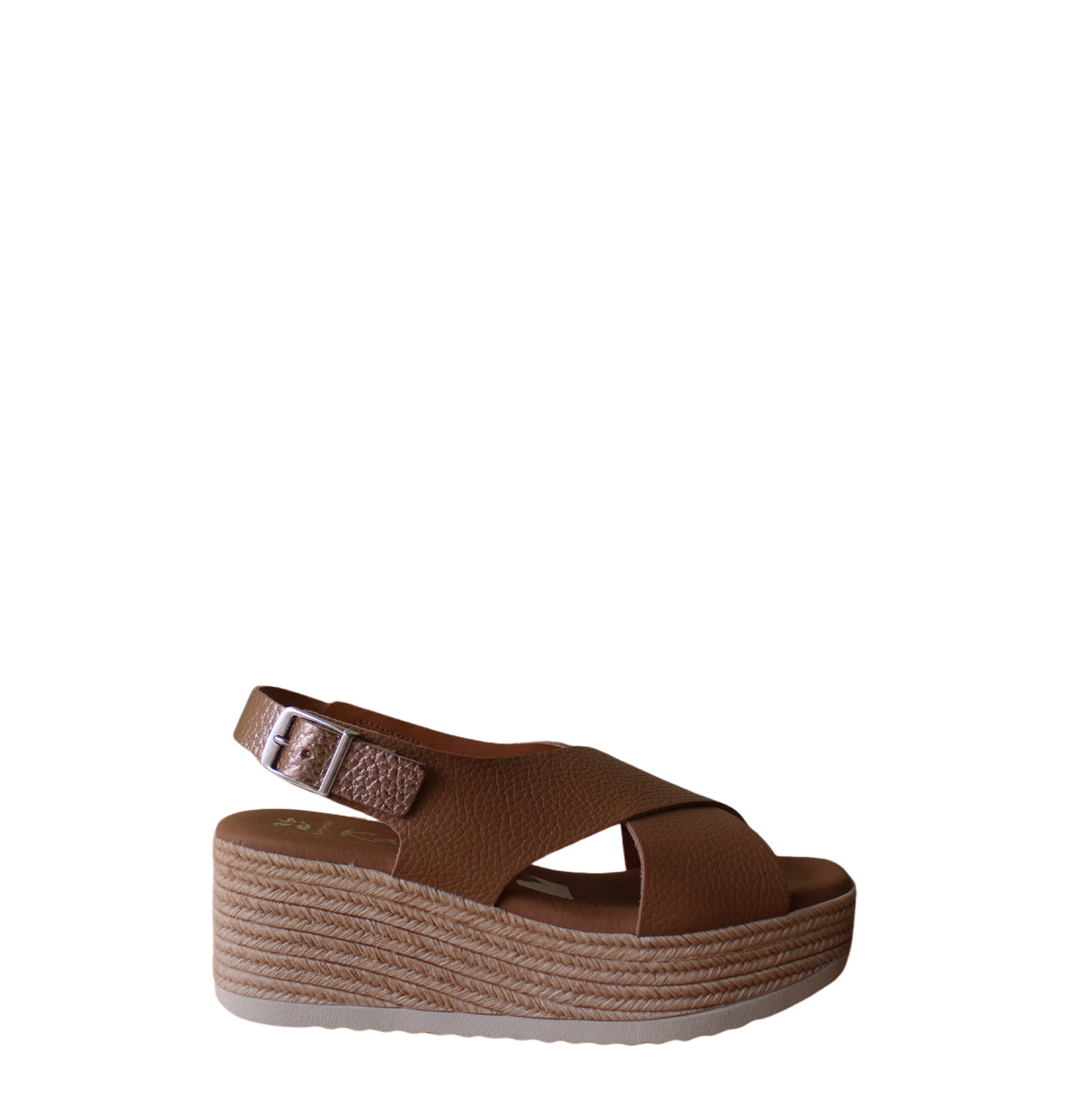 Descrição : Sandália MC de cunha, em pele,com palmilha almofadada. Apresenta duas tiras cruzadas sobre a gáspea, com aberturas laterais. Tira sobre o calcanhar com fivela para maior ajuste.