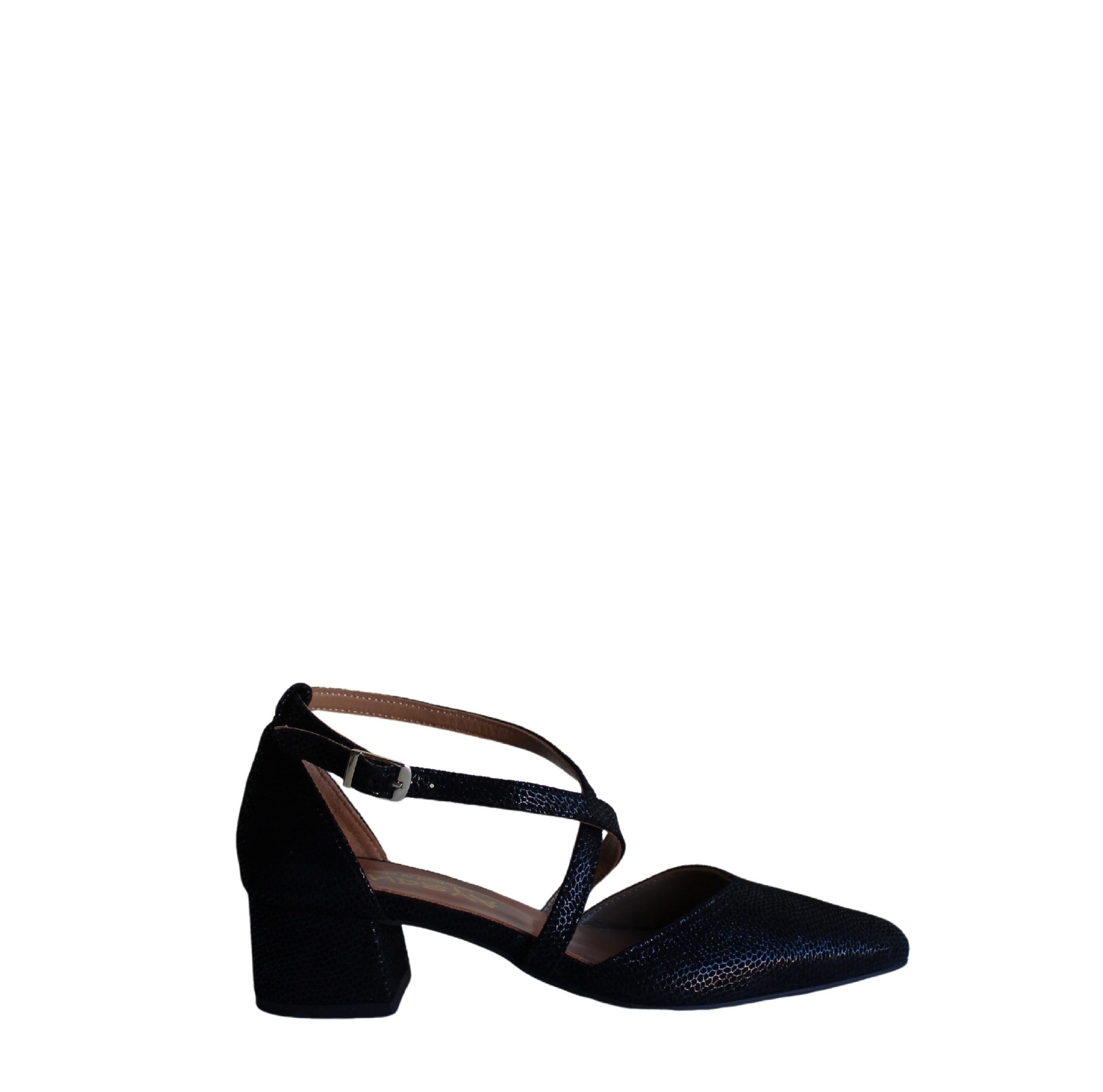 Descrição : Fabricado em Portugal, Estes sapatos marca Andrya em camurça toupe lisa e em camurça preta gravada . Apresenta design de duas tiras cruzadas sobre a gáspea. Fivela na zona do tornozelo para melhor ajuste.