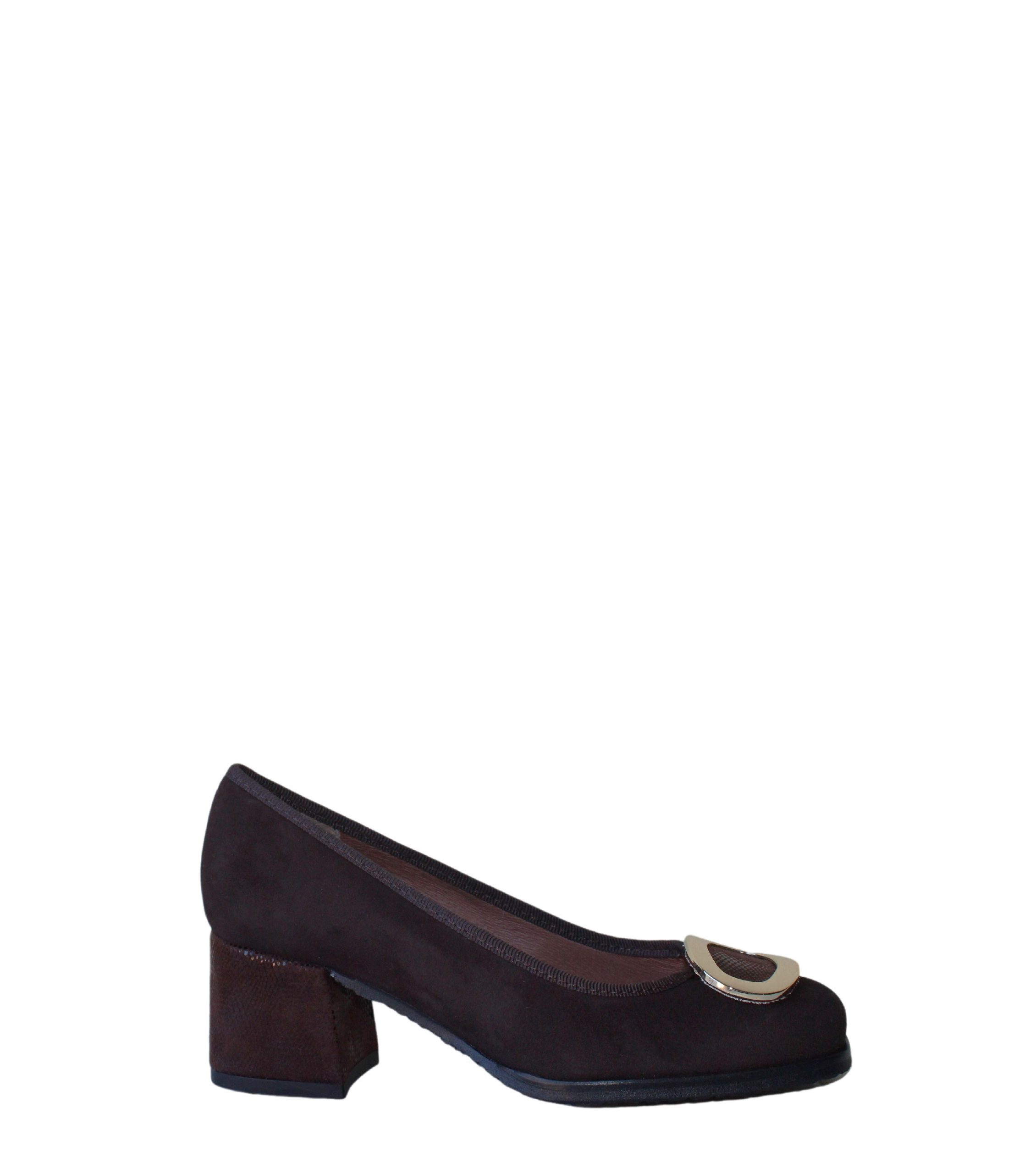 Descrição : Este sapato marca CELIA COMPANY, apresenta um design elegante com tacão largo estável. Fabricado com peles acamurçadas de alta qualidade . Apresenta detalhe de uma aplicação em dourado sobre a gaspia.