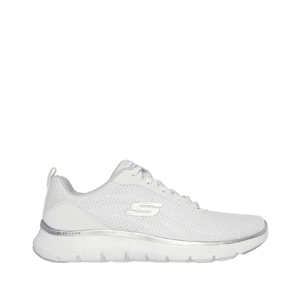 Descrição : Flexibiliza o teu estilo desportivo num conforto alegre usando as Skechers Flex Appeal 5.0 – Uptake. Este modelo vegano com atacadores tem a parte superior em tecido de rede para atletas almofadadas com acabamento metalizado e palmilhas almofadadas Skechers Air-Cooled Memory Foam®.