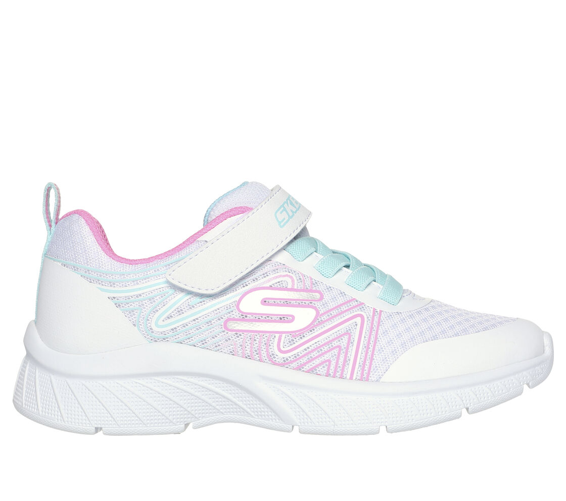 Descrição : O conforto fácil de utilizar combina com um estilo desportivo nas Skechers Microspec Plus – Swirl Sweet. Este modelo leve tem parte superior em tecido de rede e material sintético com atacadores elásticos e tira em velcro no peito do pé.